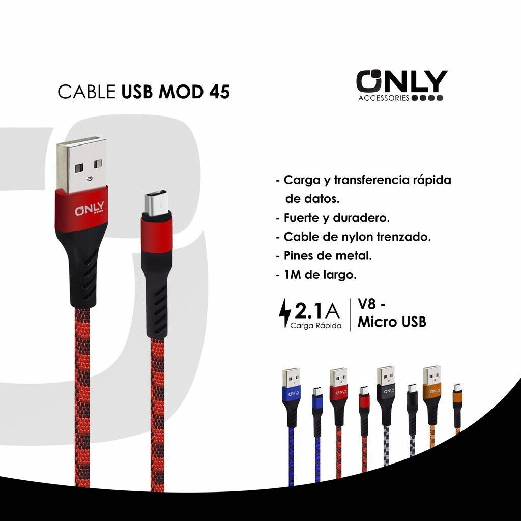 CABLE USB MOD 45 – V8 – ROJO 2.4 AMP