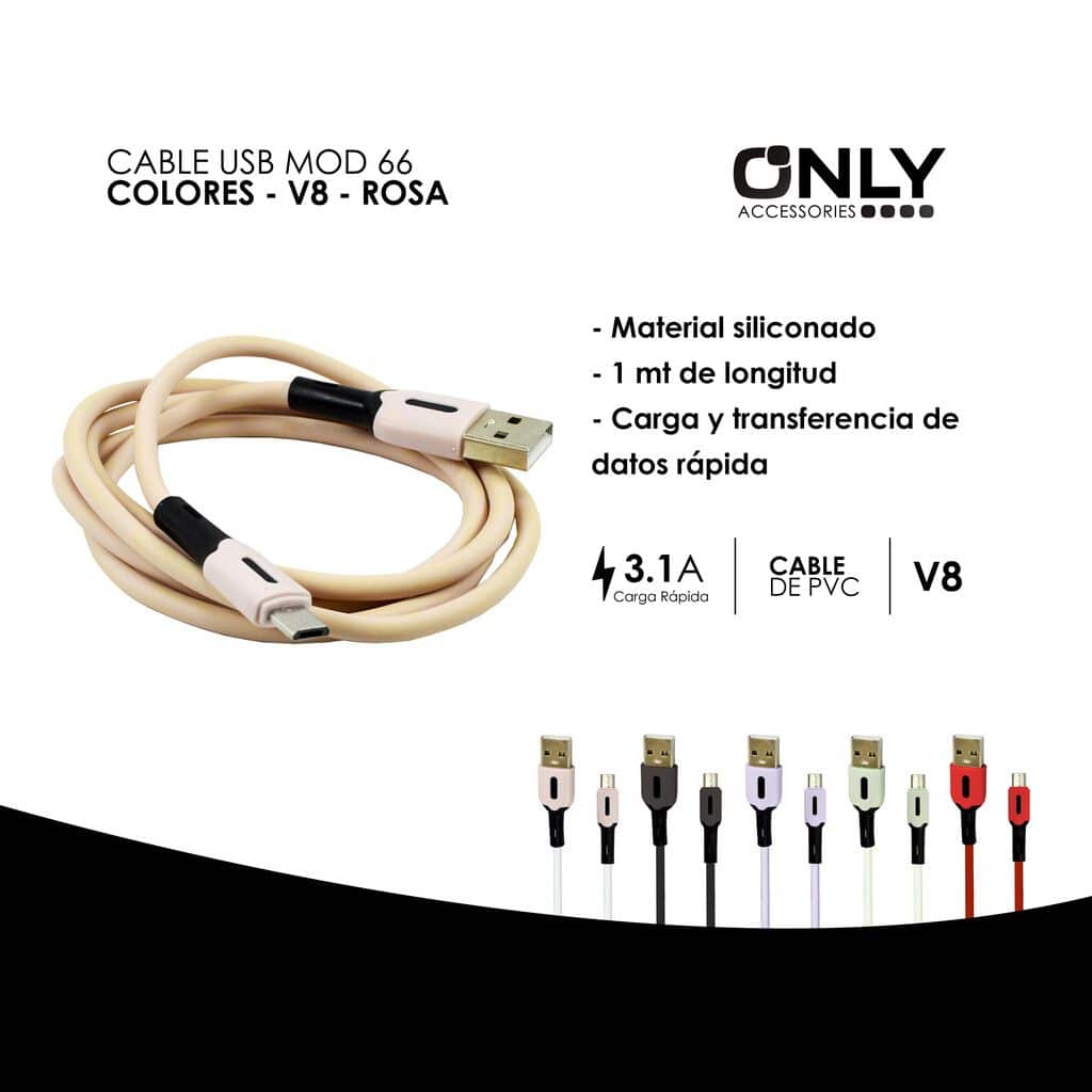 CABLE USB MOD 66 – GUMMY – V8 – ROSA