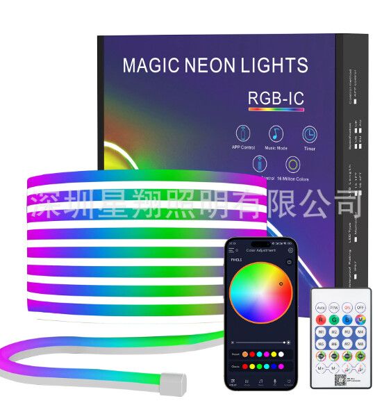 Luz Neon flexible RGB-USB, Elaborado en PVC flexible, 5v, Chip Led Optoelectronic, haz de luz 120º, 50000 hrs de duracion, resistente al agua (IP65), mando a distancia por control remoto y App, incluye herrajes de montaje de acuerdo al largo