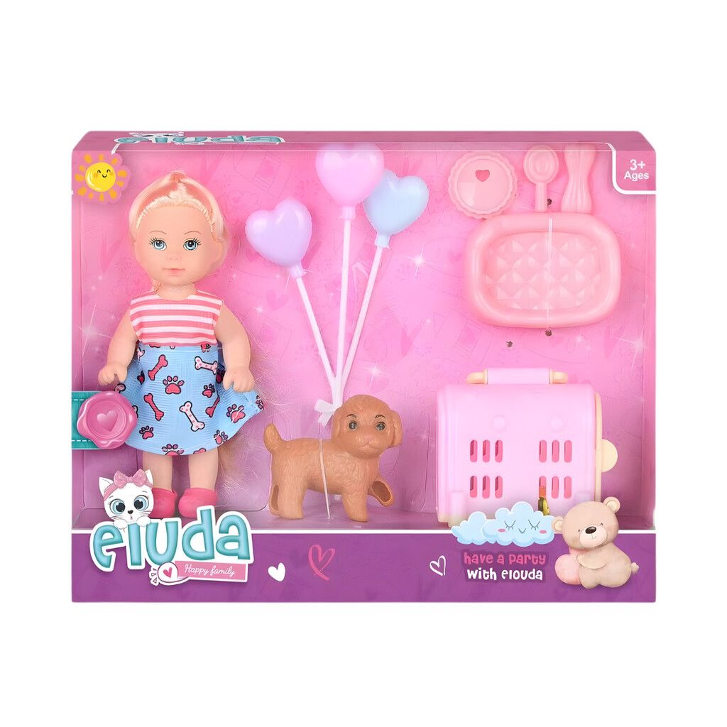 Muñeca de 11 cm. con mascota y accesorios.