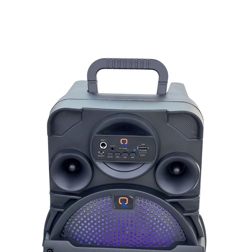 Este parlante de 8» ofrece 15W de potencia para animar reuniones, juegos, clases o karaoke en casa. Su tamaño lo hace fácil de transportar, sin perder fuerza de sonido.
