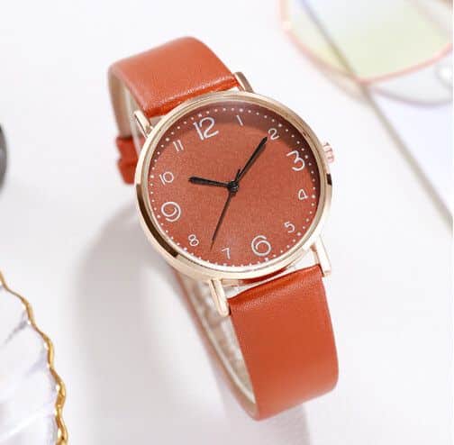 Reloj en cuarzo y porcelana, con malla de cuero artificial y hebilla tipo alfiler en aleacion, presentacion en bolsas, kit porcionable en packs x 55